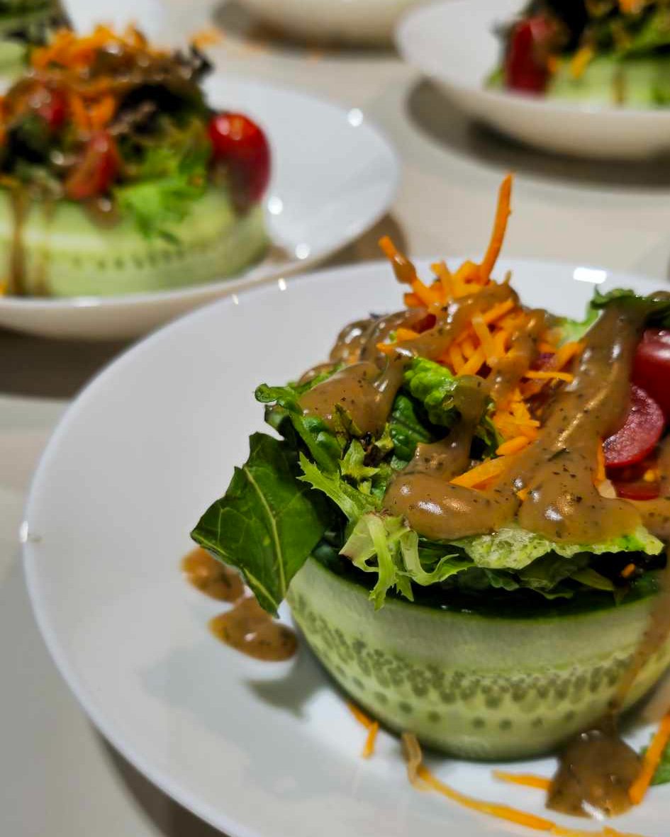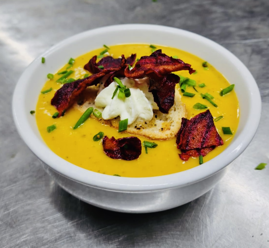 Notre chef vous concocte un repas trois services plein de goût et d’amour : potage, salade, plat principal…